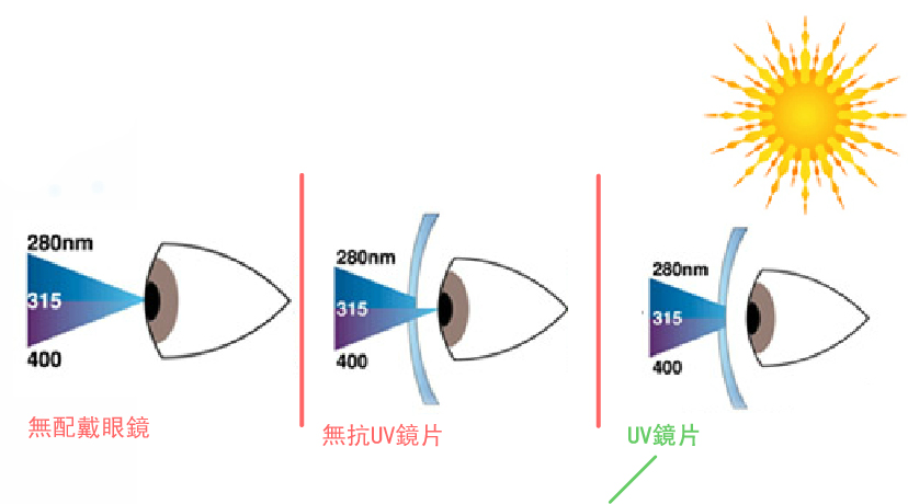 鏡片幾近無色,可以有效隔離400nm以下有害的紫外線。